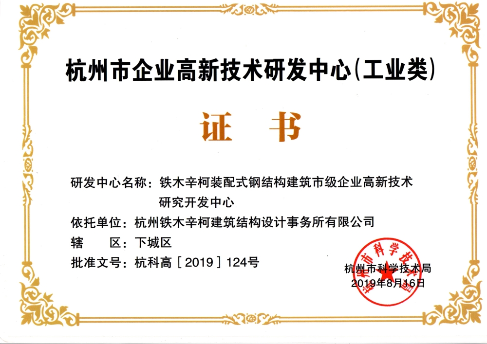 浙江省鐵木辛柯裝配式鋼結構建筑高新技術企業研究開發中心