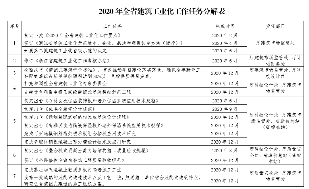 2020年3月2日,浙江省住建廳發(fā)布《2020年全省建筑工業(yè)化工作要點(diǎn)》(下文簡稱為《要點(diǎn)》),該《要點(diǎn)》進(jìn)一步明確并分解了2019年7月浙江省提出的相關(guān)目標(biāo)。