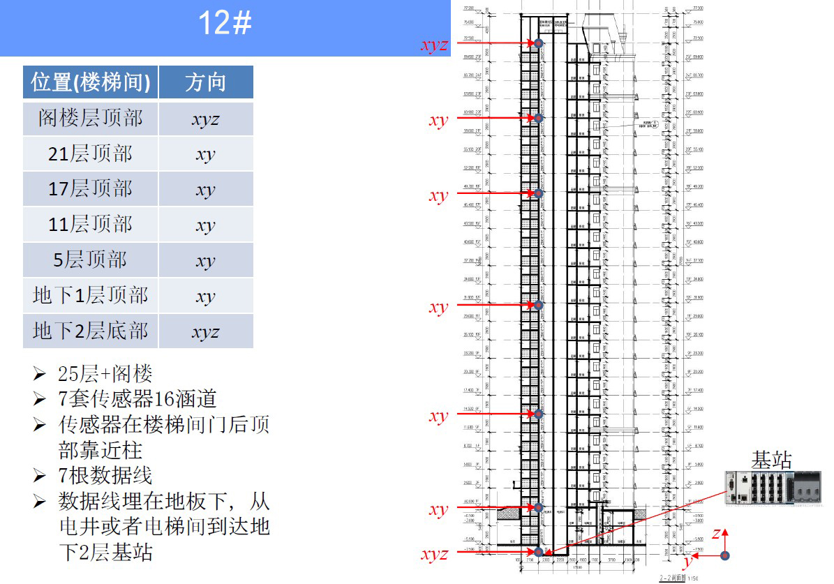 由鐵木辛柯設計事務所主持,浙江大學、北匯綠建等多家單位共同參與的住建部研究開發項目(2020-K-117) “新型裝配式鋼結構住宅體系全生命周期健康監測及性能評價”子課題:隱式框架-支撐(鋼板墻)鋼結構住宅體系全生命周期健康監測,依托北匯綠建翰林華庭裝配式鋼結構住宅建設項目,在12號樓建筑單體中建成了基于加速度傳感器的裝配式鋼結構建筑全生命周期健康監測系統。