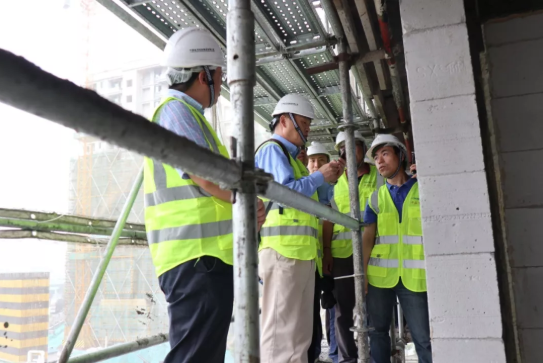 6 月18日上午,中施企協專家一行參觀了位于杭州市江干區城東板塊的首開東城金茂府項目施工現場及鋼結構住宅樣板間,與建設方金茂地產就項目的基本情況和創新技術的應用進行了深入交流。首開東城金茂府項目用地總面積為3.84萬平方米,總建筑面積14.4萬平方米,由17幢高層住宅組成。其中7#、9#、11#樓為3棟15層鋼結構住宅,建筑面積1.5萬平方米,主屋面高度43.25m,標準層層高3.05m。結構采用隱式框架+鋼板組合剪力墻鋼結構住宅體系,剪力墻布置在外墻和樓電梯間等位置,室內布置隱式框架柱,戶內空間靈活通透。